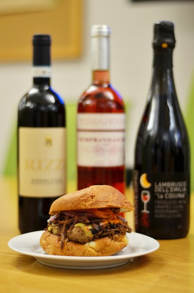 But the sure winner of the day was the La Collina “Quaresimo” Lambrusco, a deep purple sparkler from Emilia-Romagna with just enough residual sugar to mitigate the salt in all those deep fried bits of our gourmet friend—and just enough effervescence to make our happy little American cheese-bedecked burger rise to the occasion. On its own, this wine might create a little palate fatigue, but with food, it’s the perfect complement, a blend of acid, sugar, and fruit that begs for a salty, meaty, fatty meal to partner with.